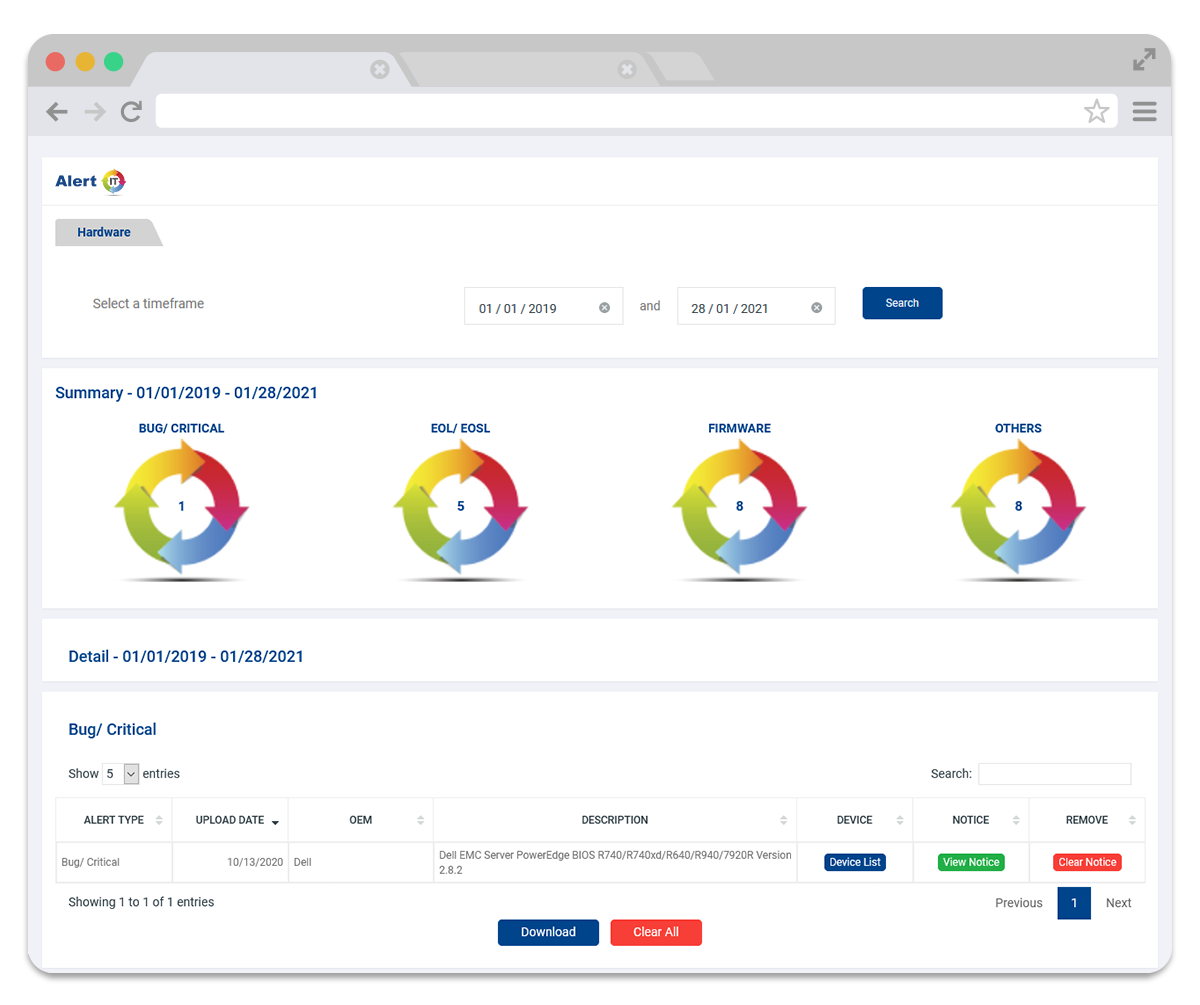 Select a data range and IngenewIT™ will deliver OEM alerts including bug fixes, EOL/EOSL announcements, firmware updates and more.